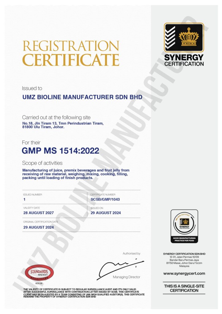 Umz Bioline Manufacturer Sdn Bhd Adalah Pengilang Produk Kosmetik, Minuman Kesihatan, Ubat Tradisional. Syarikat Ini Dimiliki Sepenuhnya Oleh Bumiputera Dan Dikendalikan Oleh Kumpulan Profesional Yang Berpengalaman Dalam Bidang Masing-Masing. Formulasi Dan Produk Yang Dihasilkan Berasaskan Ramuan Semula Jadi. Dicipta Khas Untuk Kegunaan Lelaki Dan Wanita Di Asia.