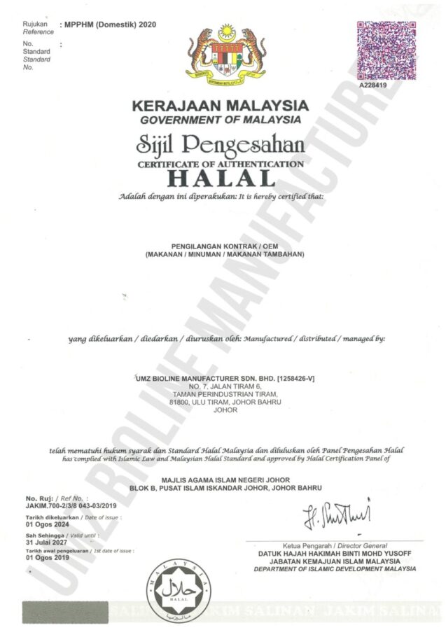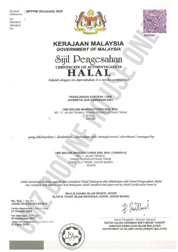 Tingkatkan Kredibiliti Produk Anda Dengan Sijil Halal, Sijil Mesti, Sijil Food Tag, Sijil GMP kosmetik, minuman dan ubat tradisional yang disediakan oleh kilang kami.
